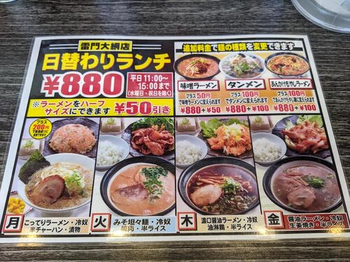 お元気さまです。わくワークの義です。 近くにあるラーメン屋さんが美味しくて、2ヶ月かけてランチメニューをコンプリートしました! 日替わりランチは、月、火、木、金です。水曜日は、お店がお休みのようです。 Googleマップの情報では、休みなしでの営業…