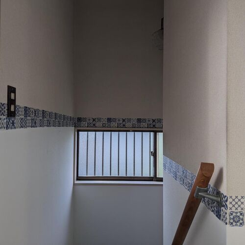 お元気さまです。わくワークの義(ヨシ)です。 古い壁紙と新しい壁紙の切り替えの部分にマスキングテープを貼ってみました。 階段の天井部分から張り替えたかったのですが、届かないので途中から新しい壁紙にしたところ、色の差が出てしまったので、この方…