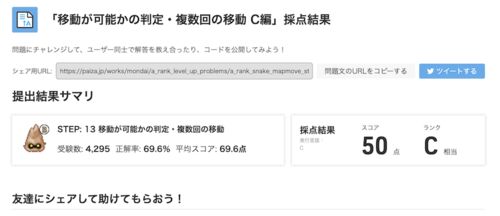 お元気さまです。わくワークの義(ヨシ)です。 プログラミングスキルのレベルアップを目指して、paizaラーニングで練習問題を解いています。 練習問題は、次のリンクで確認できます。 paiza.jp そんなに難しくないという感触で、提出しましたが・・・ 50点…
