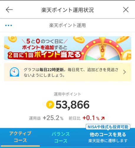 お元気さまです。わくワークの義(ヨシ)です。 2020年7月から、楽天ポイントでポイント運用を始めていました。 先月までに9,560ポイント増えていたことがわかりました。 waqwork.hatenablog.com 前回の投稿時に1000ポイントを追加して43,000ポイントで運用…