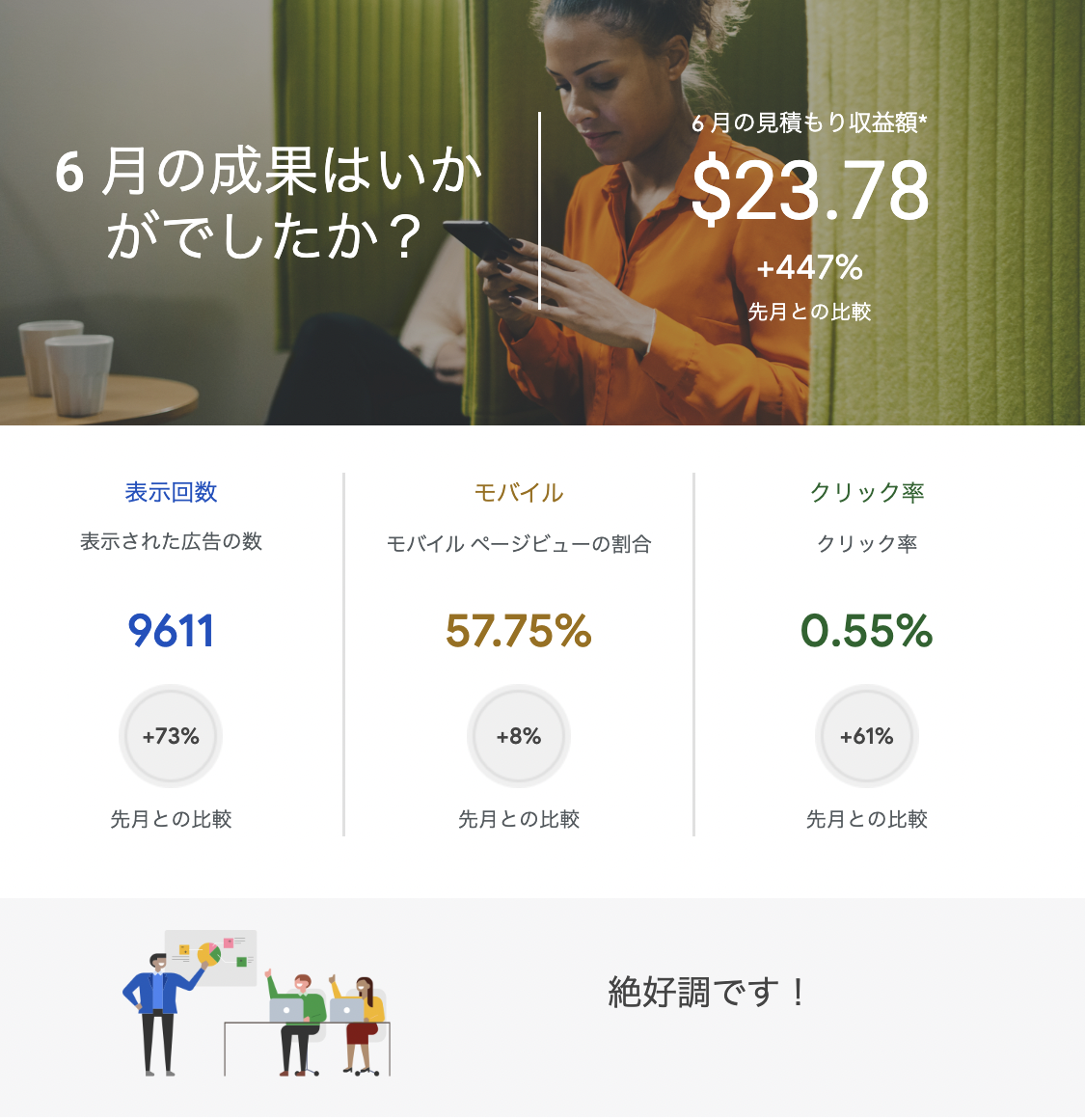 Googleアドセンスから6 月のレポートが届きました。