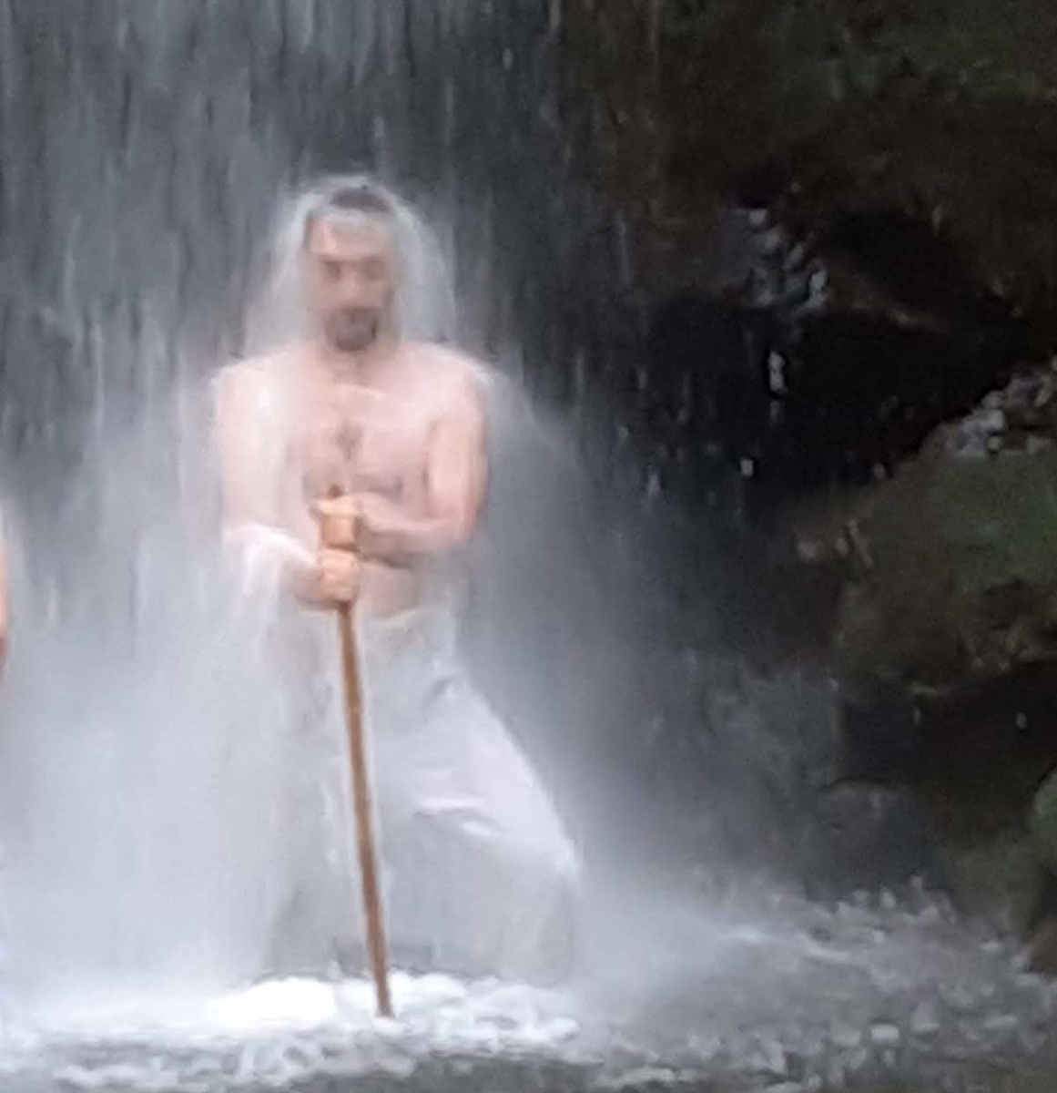 滝に入ると、まずは少しずつ体を沈め、水に慣らしていきます。
