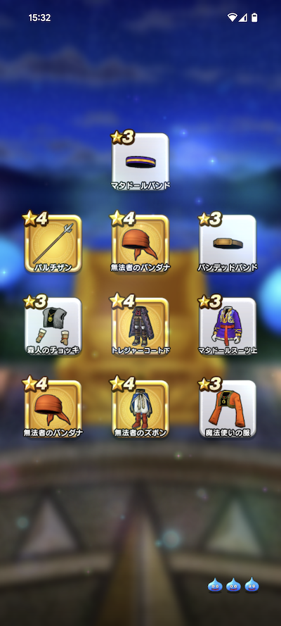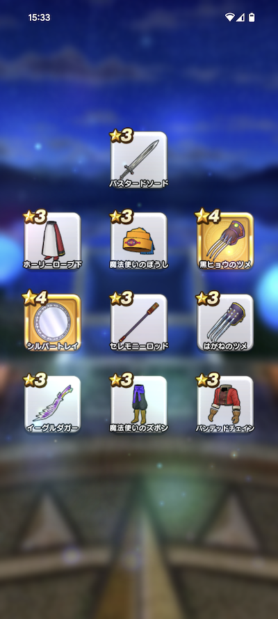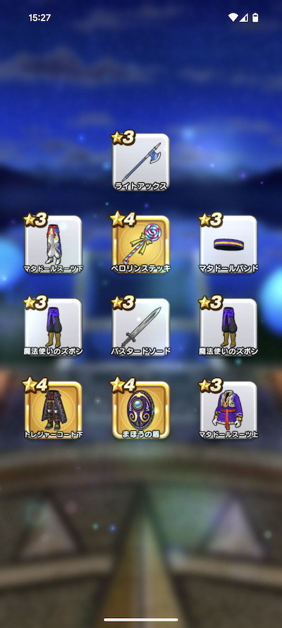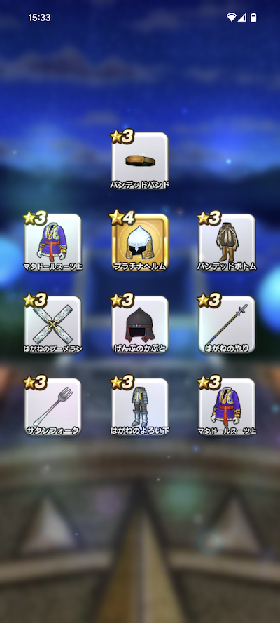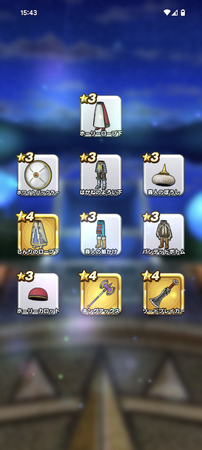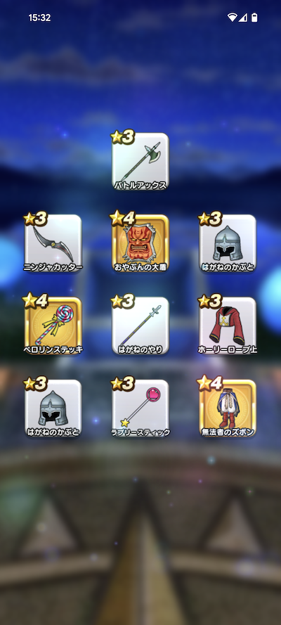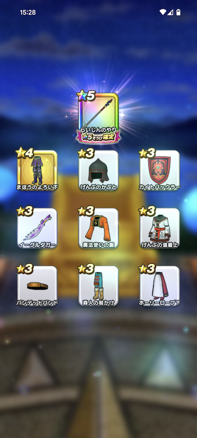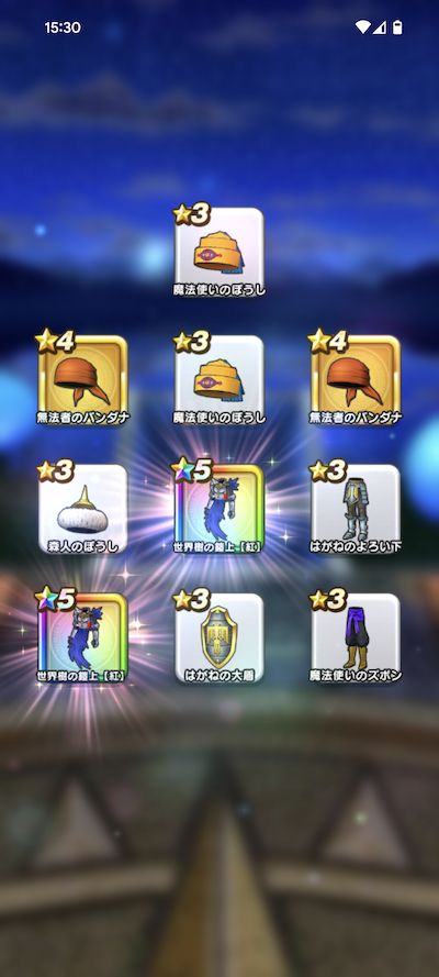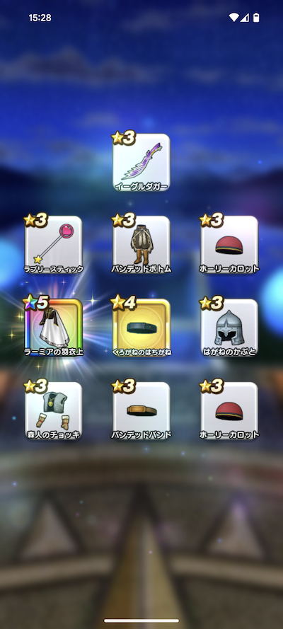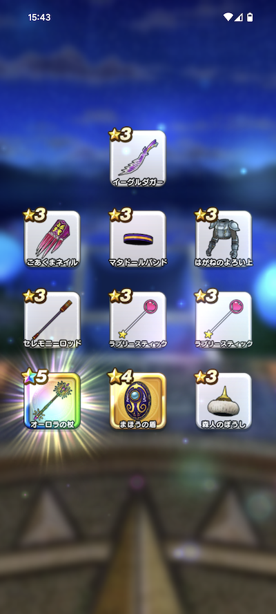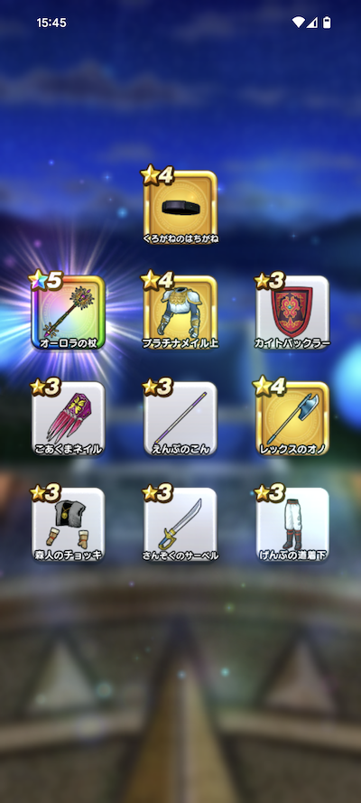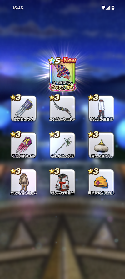 20連200個のふくびきで、おまけを含めた☆5装備は、16個でした。