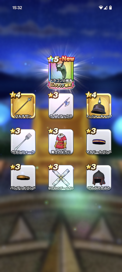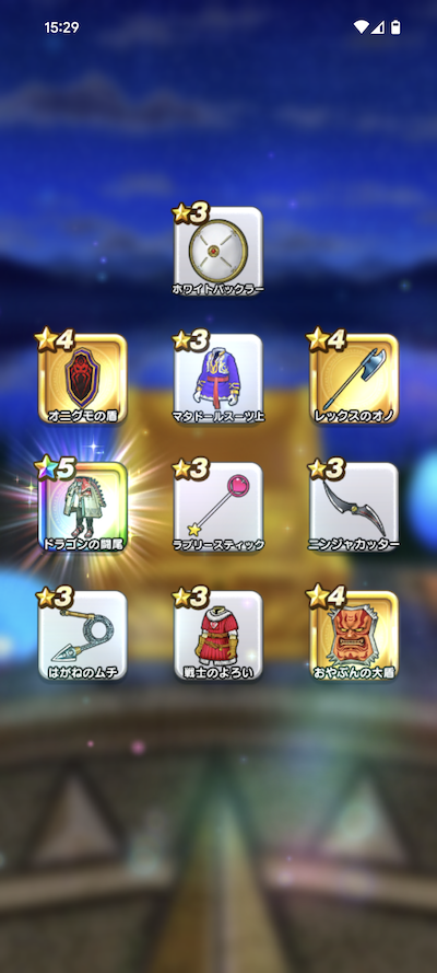 ☆5装備1個 当たり「ドラゴンの闘尾」出ました!
