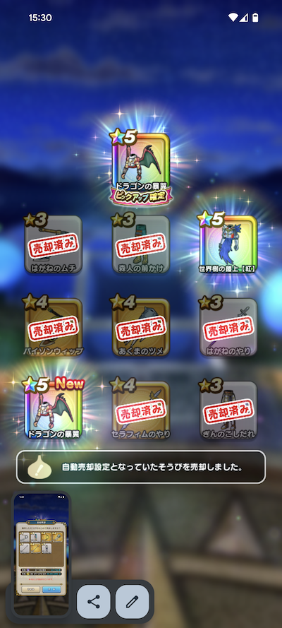 ☆5装備3個 当たり「ドラゴンの暴翼」が出ました!