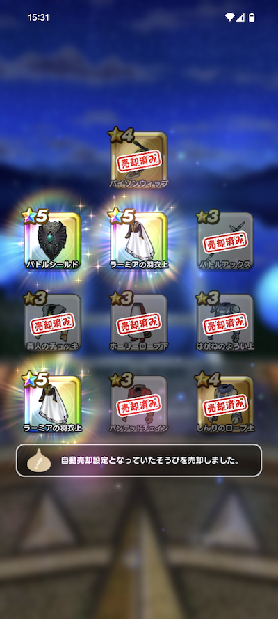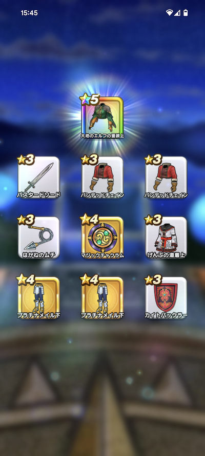 ドラゴン装備は、おまけを除けば2個でけでしたが、ドラゴン装備の武器、防具が揃ったので良かったです。
