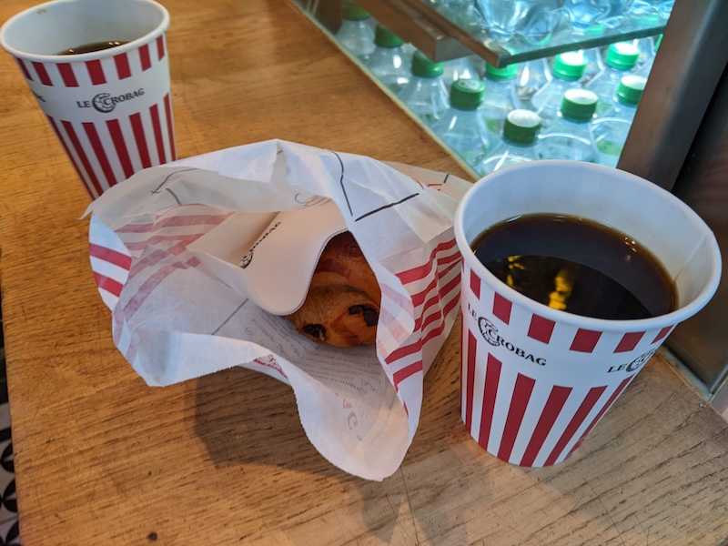 2人分のチョコクロワッサンとコーヒーで、10.8Euro(1,726円)でした。