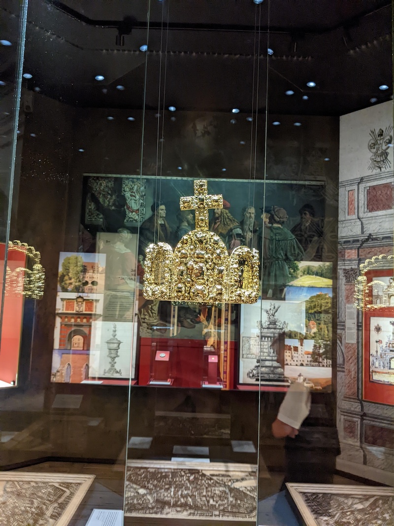 お城の内部も見学しました。最初、この広い部屋で終わりと思っていましたが、奥の扉の先に進むように促されたので、行ってみました。
