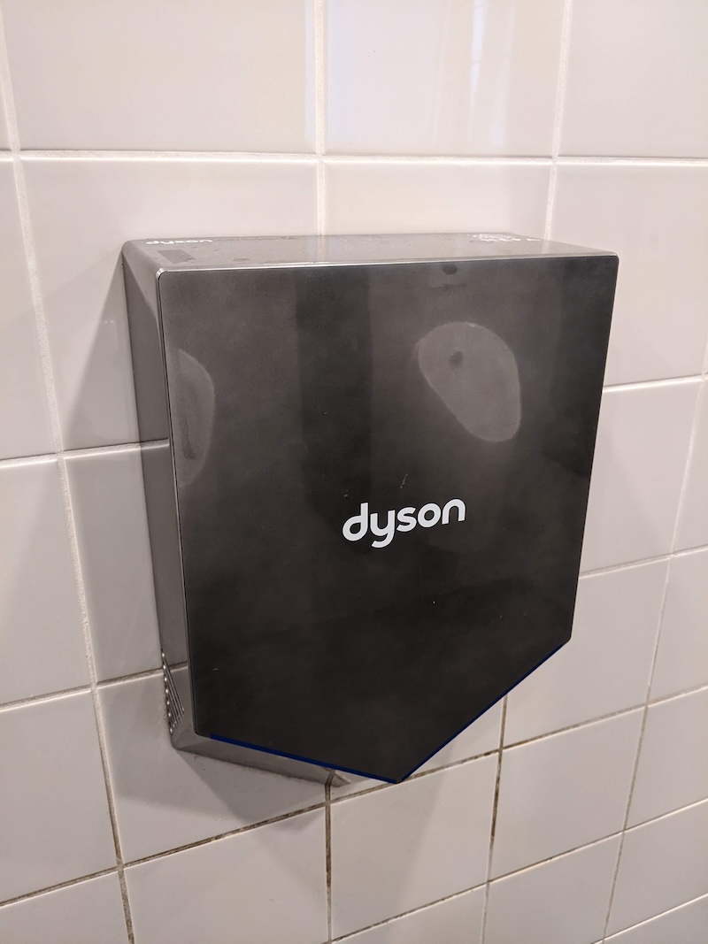トイレにあるダイソンの乾燥機が強力で、良く乾きます。