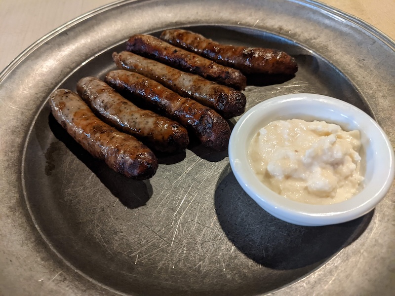 ソーセージとの付け合わせは、西洋わさび、ザワークラウト、ポテトサラダから選べます。最初は6本ずつ注文しました。