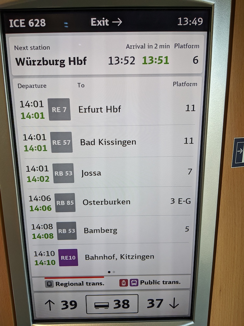 快適な高速鉄道で、ほぼ予定どおりヴュルツブルク到着です。